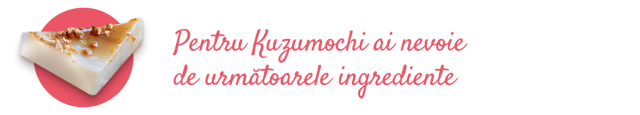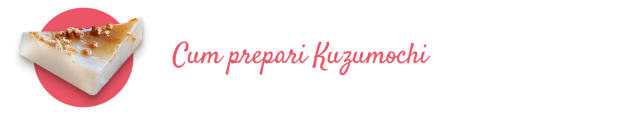 - Peste o oră se scoate kuzumochi din recipient și se taie în cuburi de 2,5 cm. Se presară cu kinako și se stropește cu sirop de zahăr brun înainte de servire.